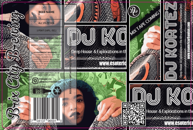 “The can design for Brix City Brewery is actually a mixtape cover I did for House Music Mix. For those who don’t know, I’m a DJ and visual artist and have been inspired by DJ Culture. I feel DJing is just as important as my fine art. The reason I was excited with this design was because I saw it as an opportunity to cross promote my exploration in DJ Culture and also my collaboration with Botswana designer Phomolo Masega and her Black Mantra label. I asked myself, “How is this going to make my brand “Esoteric Urbanism” grow and how can I intrigue the person who buy this beer. Also, I said that the can has to look cool to the person who doesn’t drink beer but will see the can in my promos.” I also didn’t want to make an design exclusively for Brix City. This is a temporary run and I didn’t see myself going all out, LOL. This is why my graphic was the perfect fit for me. U can purchase the beer and see the other artists designs by going to the link in the first sentence.”